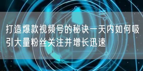 随着数字化时代的来临,越来越多的人选择通过社交媒体平台表达自己的观点和创意。其中,视频号作为一种新兴的社交娱乐形式,吸引了大量用户的关注和参与。如何打造爆款视频号,在一天之内吸引大量粉丝关注并实现快速增长呢?本文将为你揭示其中的秘诀。